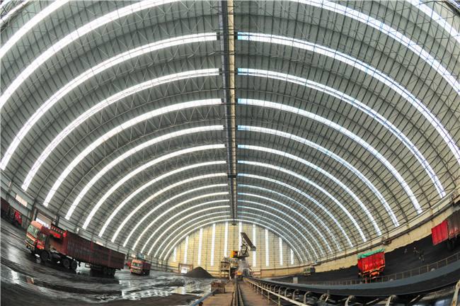 堆场料场封闭式主体结构为新型的钢沅江网架结构,维修结构为沅江钢结构沅江不锈钢板和纤维增强塑料灯具,其外形以沅江网架式和平板为主,连接柱沅江施工自由,设置喷雾自动喷水系统,从而可以实现棚内所有物料的覆盖,减少物料在运输过程中的损耗,起到防尘的作用,减少工厂关闭后的二氧化硫排放量,50mg/m3颗粒排放量小于10mg/m3,非常适合低能耗。低闭库自动感应反应对库存轮胎进行清洁,确保轮胎不受道路污染;封闭的储存区可从源头控制粉尘污染,控制无序排放。